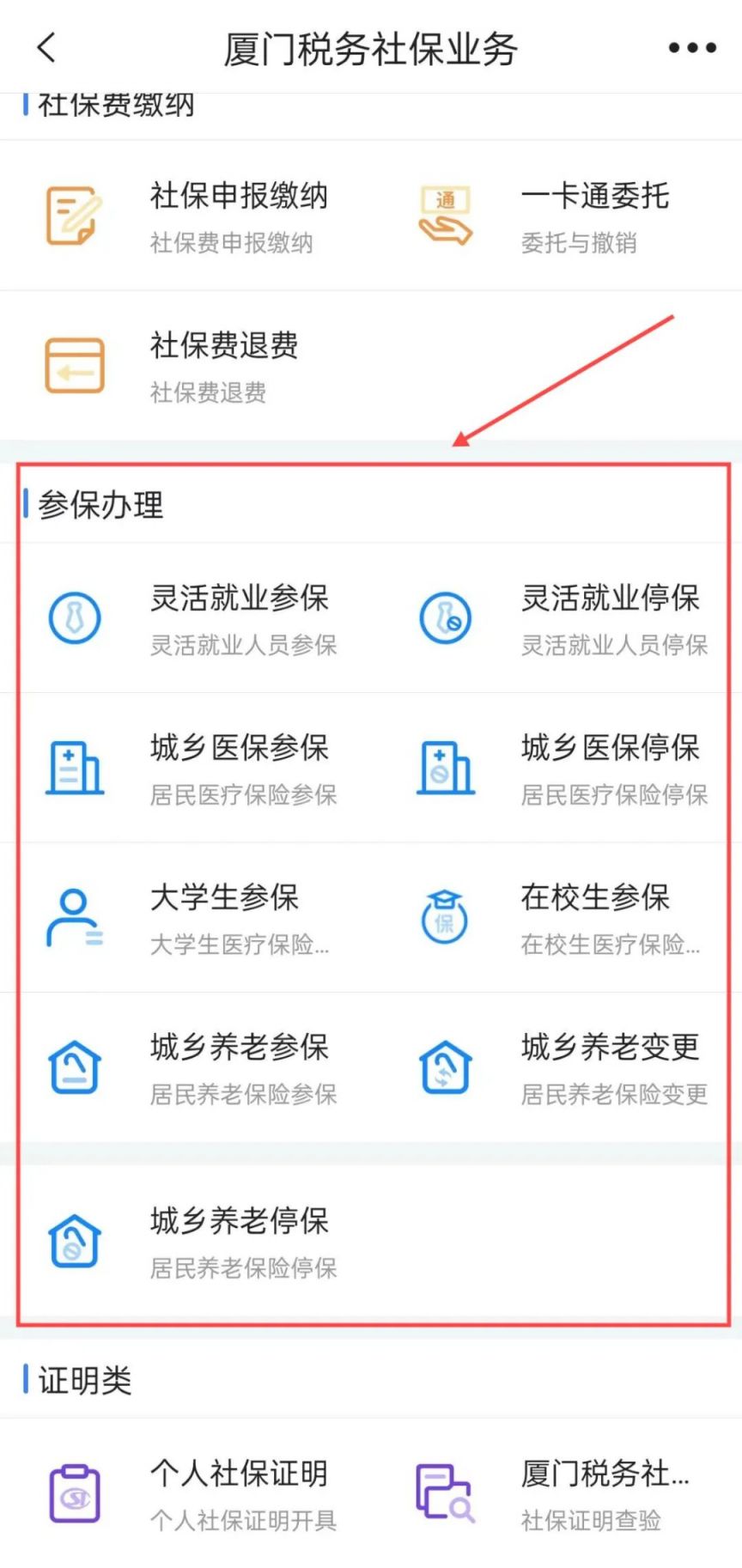 符合参保条件的个人也可通过“闽政通”APP(i厦门-税务社保业务)或“i厦门”APP(厦门税务-税务社保业务)自行办理参保登记手续。